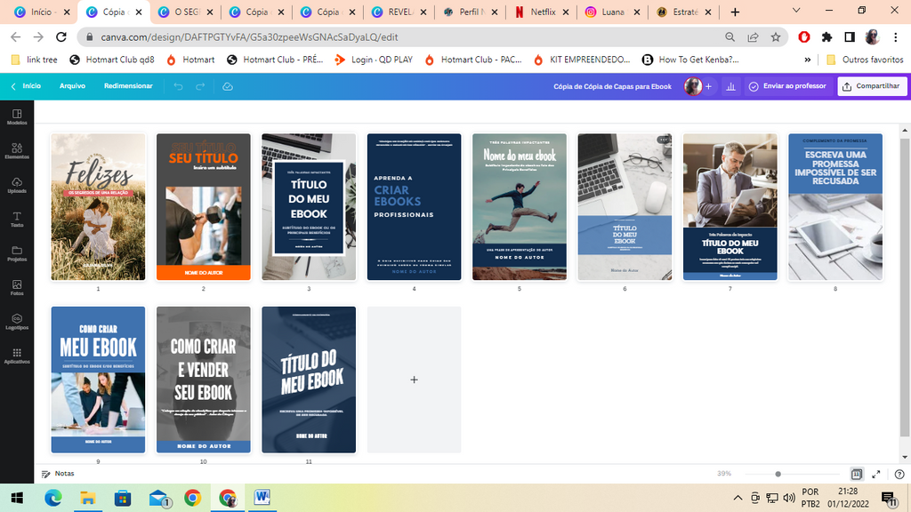 Você terá acesso aos nossos modelos de capas para e-books feito no Canva.